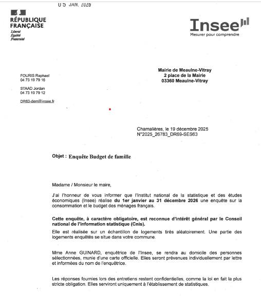 Nouvelle enquête INSEE (de janvier à décembre 2026-renseignements numéro enquête 7652980)
