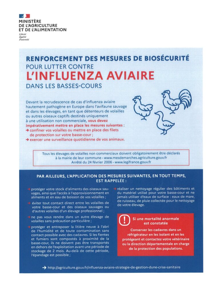 Mesures contre la grippe aviaire (octobre 2025)